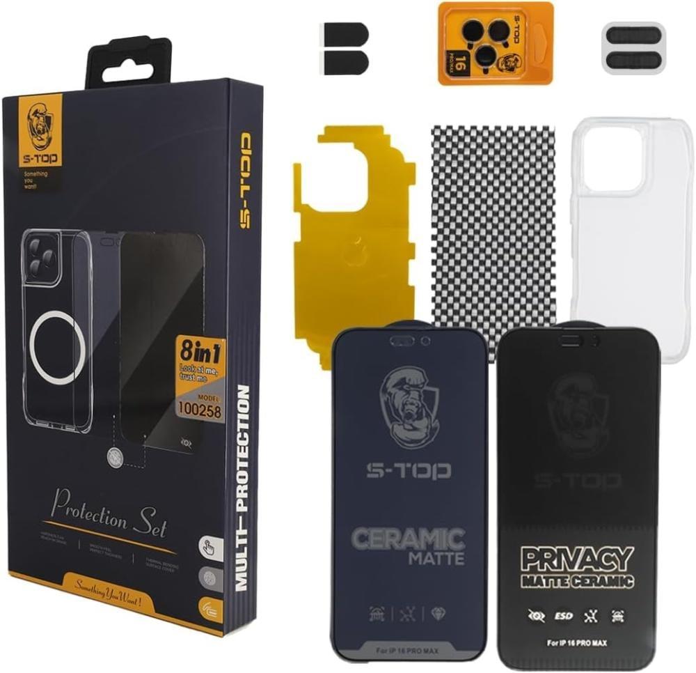بكج حماية مع استكر لقافة بكج 8 في 1 من S-TOP | آيفون 16 برو